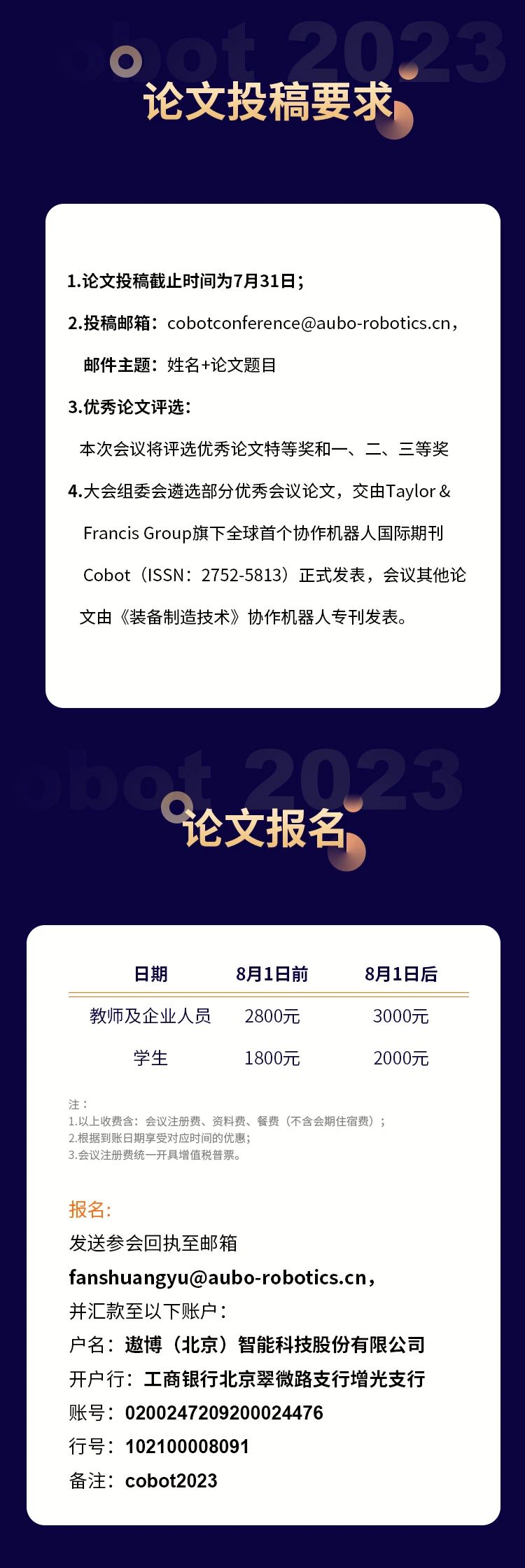 2023协作机器人技术及应用会议(Cobot 2023)通知(第一轮)